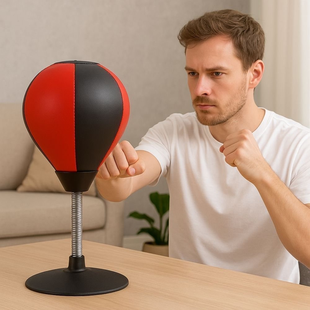 Ο Επιτραπέζιος Σάκος του Μποξ είναι η τέλεια λύση για να αποφορτίζεσαι από την καθημερινή πίεση και να χαλαρώνεις, χωρίς να χρειάζεσαι πολύ χώρο. Χάρη στο ελατήριο στη βάση, επιστρέφει πάντα στη θέση του μετά από κάθε χτύπημα, προσφέροντας ατελείωτη διασκέδαση και άσκηση.