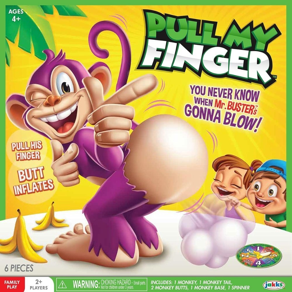 Το Pull My Finger είναι το ξεκαρδιστικό ΝΕΟ παιχνίδι που συνδυάζει 2 πράγματα που κάνουν τους πάντες να γελούν, Monkeys & Farts! Περιστρέψτε τον κλώστη της μπανάνας, τραβήξτε το δάχτυλο της Μαιμούς και παρακολουθήστε τον ποπό του να φουσώνει με κάθε τράβηγμα! Αποφύγετε τα αέρια και ΚΕΡΔΙΣΤΕ.