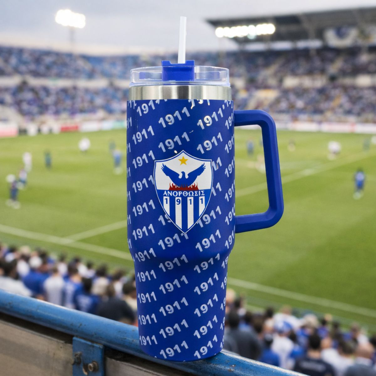 Θερμός Ποτήρι Ταξιδιού 1200ml με Χερούλι & Καλαμάκι Ανόρθωσις 1911 Μπλε
