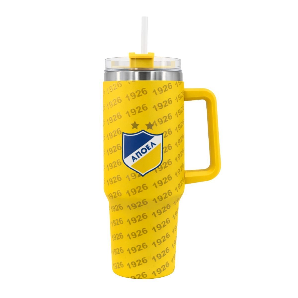 Θερμός Ποτήρι Ταξιδιού 1200ml με Χερούλι & Καλαμάκι Αποέλ 1926 Κίτρινο