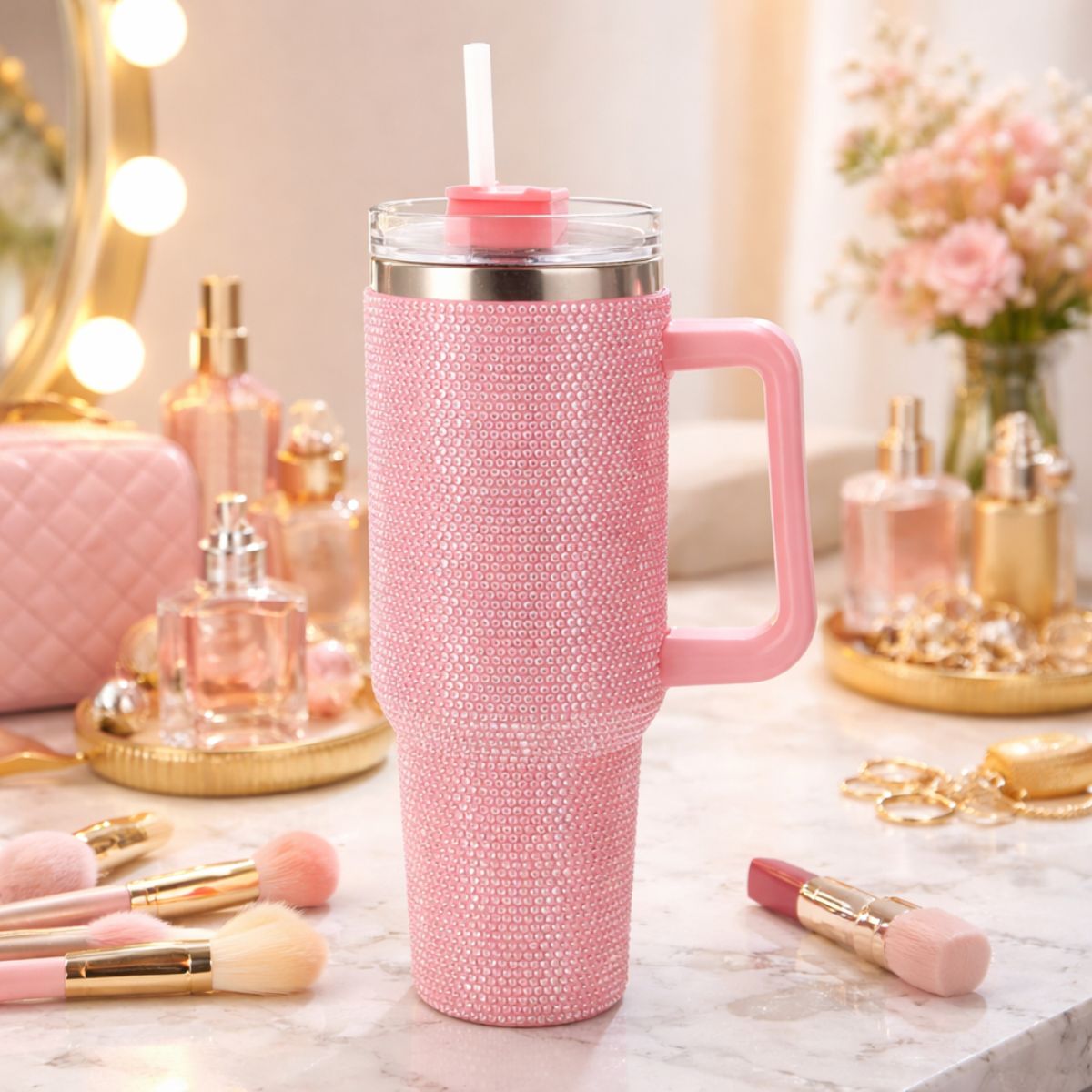 Ο Θερμός Ποτήρι Ταξιδιού με Χερούλι & Καλαμάκι Ροζ Ιριδίζον Στρας είναι η ιδανική επιλογή για όσους θέλουν να απολαμβάνουν τα αγαπημένα τους ροφήματα παντού, με στυλ και άνεση. Κατασκευασμένο από ανοξείδωτο ατσάλι SUS 304, προσφέρει ανθεκτικότητα, υγιεινή χρήση και εξαιρετική διατήρηση θερμοκρασίας.