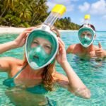 The full face snorkeling mask offers a 180° panoramic view and comfortable breathing through both nose and mouth.