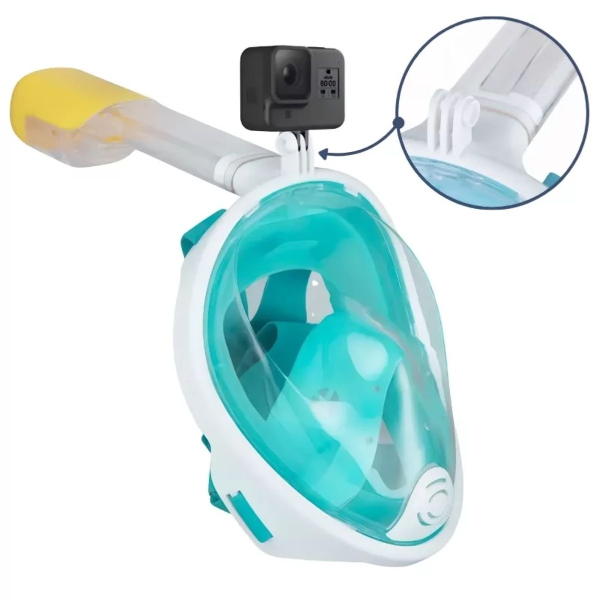 The Full Face Snorkeling Mask with snorkel is the ideal choice for those who love snorkeling and want a comfortable and complete underwater experience. Its full-face design allows natural breathing through both the nose and mouth, making use easier and more relaxing.