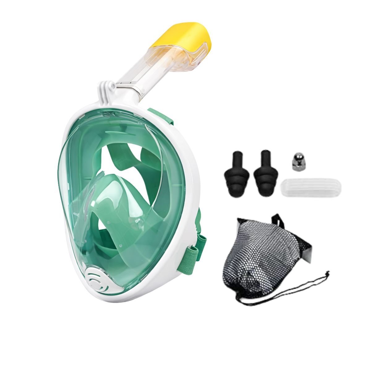 Home Seasonal Summer Full Face Snorkeling Mask XL with Snorkel 180° Panoramic View & Dry Top System Green