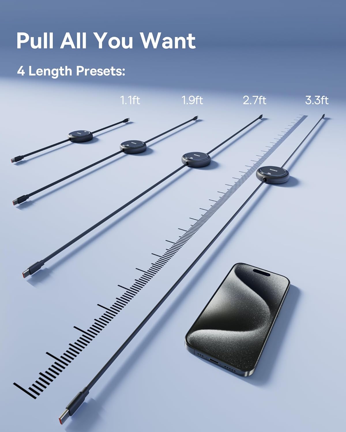 • Fully Retractable Cable: Say goodbye to tangled cables and a messy charging environment. Pull on the retractable USB C cable to retract and store for ease of storage.