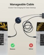 - Desk-Friendly & Organized: Keep your workspace clean and organized with the 100W USB-C retractable cable, featuring a neat snap-back design that reduces clutter and tangling.
