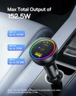 - 152.5W Super Fast Charging: Baseus latest and unique 152.5W USB C Car Charger that supports PPS PD3.0 QC4.0 SCP FCP PPS AF fast charging, 3 ports 100W+30W+22.5W independent fast charging technology, single port power will not decrease when 3 ports are used at the same time, can quickly charge 3 devices at the same time. This fast charging car charger is designed to rapidly power your smartphone, tablet, or laptop, ensuring efficient charging on the go. Note: The maximum power of 152.5W can only be achieved on 24V cars. The power may be reduced on 12V cars.
