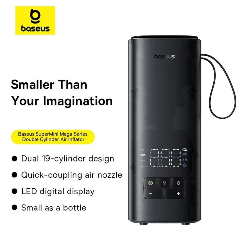 • Baseus SuperMini Mega Series Double Cylinder Air Inflator is your reliable assistant on the road, which will provide comfort and safety in any situation!