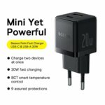 Baseus Charger Wall 20W USB-C/USB-A PALM Series EU Black