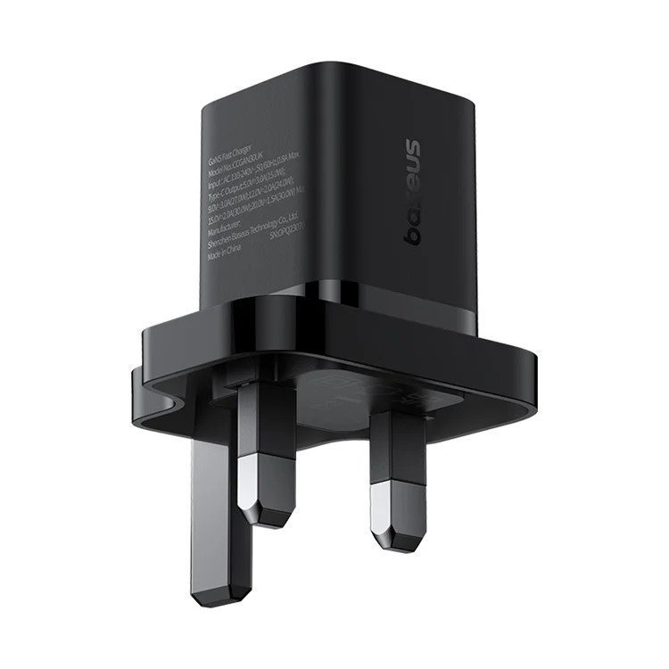• BASEUS GaN5 Fast Charging Adapter Mini Edition Type-C Single Port 30W UK Plug Wall Charger – Black