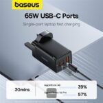 • Energy saving and Environmental Friendly: Baseus GaN5 65W charger enjoys the innovative hybrid power solution, which increases the power conversion rate to 95%, and provides industry-leading efficiency to avoid wasting energy.