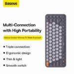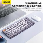 - Enhance your typing experience with the Baseus K01A Wireless Tri-Mode Keyboard. With its triple connection feature, this keyboard effortlessly pairs with three devices simultaneously, enabling smooth switching between your computer, smartphone, and tablet with ease and efficiency.