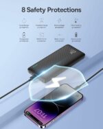 • Emergency Backup Power The 10,000mAh battery bank cell capacity gives you enough power to charge the iPhone 15 Pro Max 1.3 times, the Samsung S23 1.5 times, and the iPad mini 5 more than once.