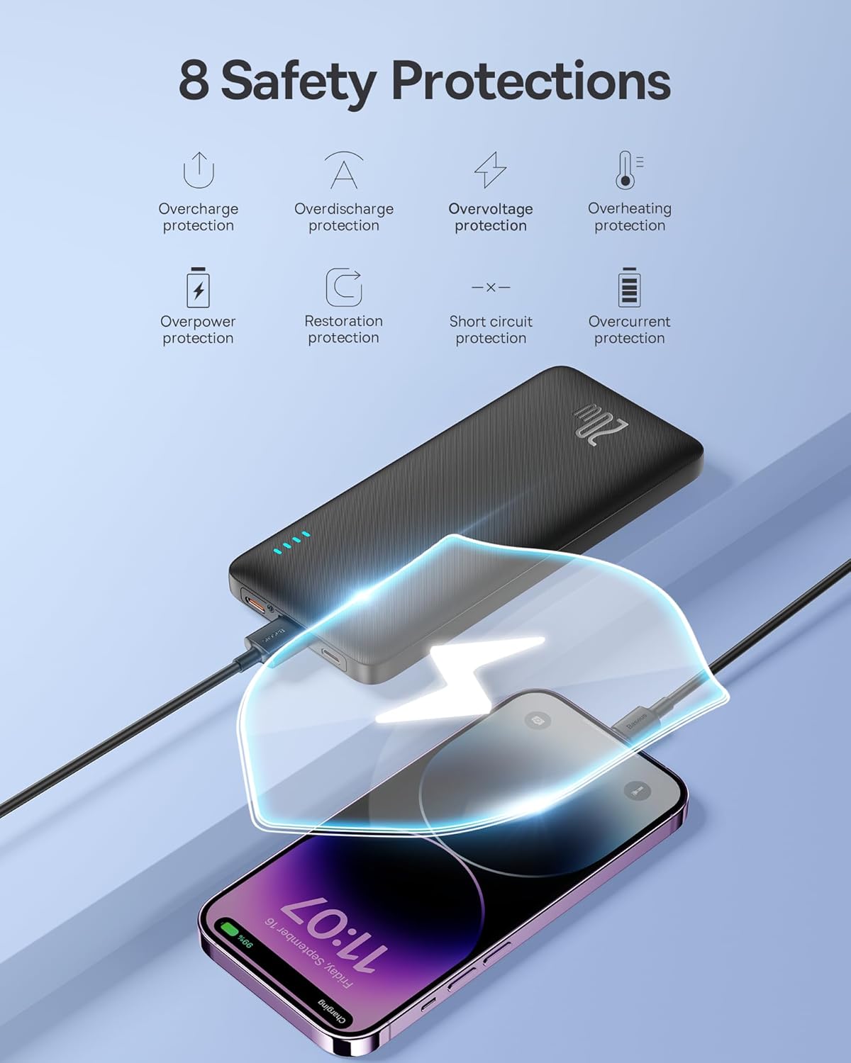 • Safe Travels Baseus usb c power bank has 9 built-in safety protections to protect you and your device. It is allowed and safe to board with on any plane, so you won’t be caught on short of power when you are on the go.