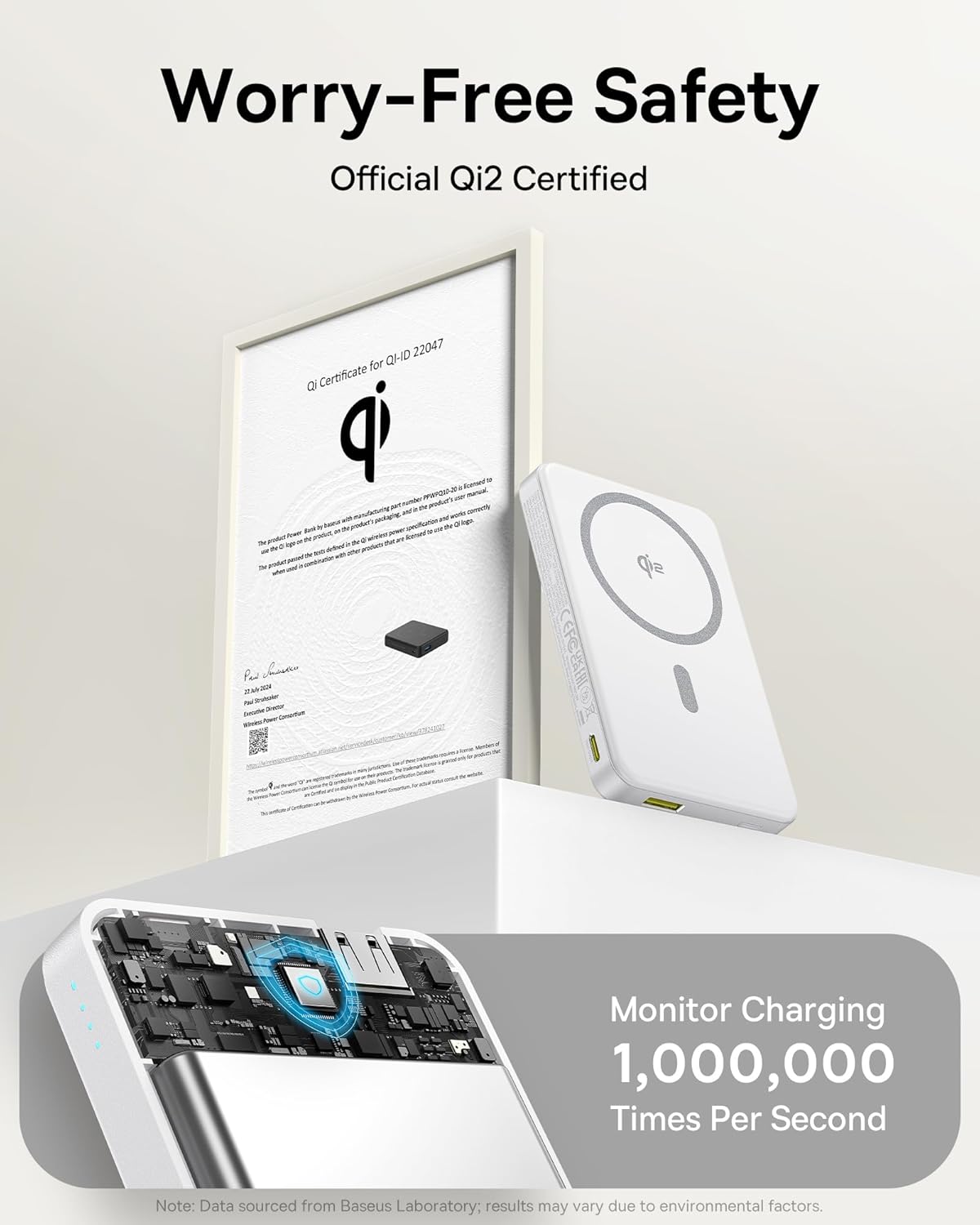 - 𝐐𝐢𝟐 𝐂𝐞𝐫𝐭𝐢𝐟𝐢𝐞𝐝 𝟏𝟓𝐖 𝐖𝐢𝐫𝐞𝐥𝐞𝐬𝐬 𝐂𝐡𝐚𝐫𝐠𝐢𝐧𝐠 Different from old 7.5W MagSafe portable charger in market, Baseus Qi2 power bank can release authentic 15W high-speed charging, 2X faster than old 7.5W QI standard. Maximizing compatibility and charging efficiency for your iPhone, get your iPhone 16 Pro from 0 to 35% in just 30 minutes. And backed by Qi2 official certification (QI2 ID: QI-22047), seamlessly compatible with Mag-Safe.