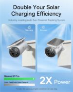 - Double Your Solar Charging Efficiency: Features an industry-leading sun-powered tracking system, this solar security camera allows the solar panel to move 40° left and right with the sunlight for 100% higher solar energy a day than regular fixed panels, ensuring continuous operation without constant recharging.