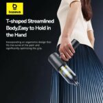 The Baseus AT cordless handheld hoover offers a high suction power of up to 5000 PA and a running time of 30 minutes, so you can effortlessly remove dust, crumbs and pet hair from carpets, kitchens, living rooms and offices. Noise level below 75 dB, perfect for home or car. Features: – Cordless & Long run time – Mini size & Lightweight – Easy & Fast charging – Versatile & efficient – Easy maintenance.
