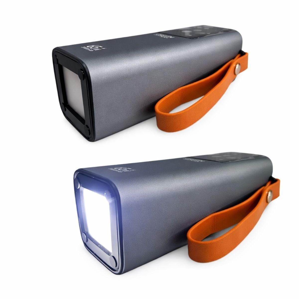 Επιπλέον, το powerbank διαθέτει ενσωματωμένο φακό LED με τρία επίπεδα φωτισμού (ισχυρό φως, χαμηλό φως και flash), ο οποίος ενεργοποιείται μ ε διπλό πάτημα του κουμπιού. Η λειτουργία αυτή το καθιστά ιδανικό για ταξίδια, camping ή καταστάσεις έκτακτης ανάγκης.