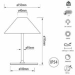 - Portable, light, it can be used both indoors and outdoors (IP54) such as: living rooms, restaurants, cafes, bedrooms, kitchens, offices