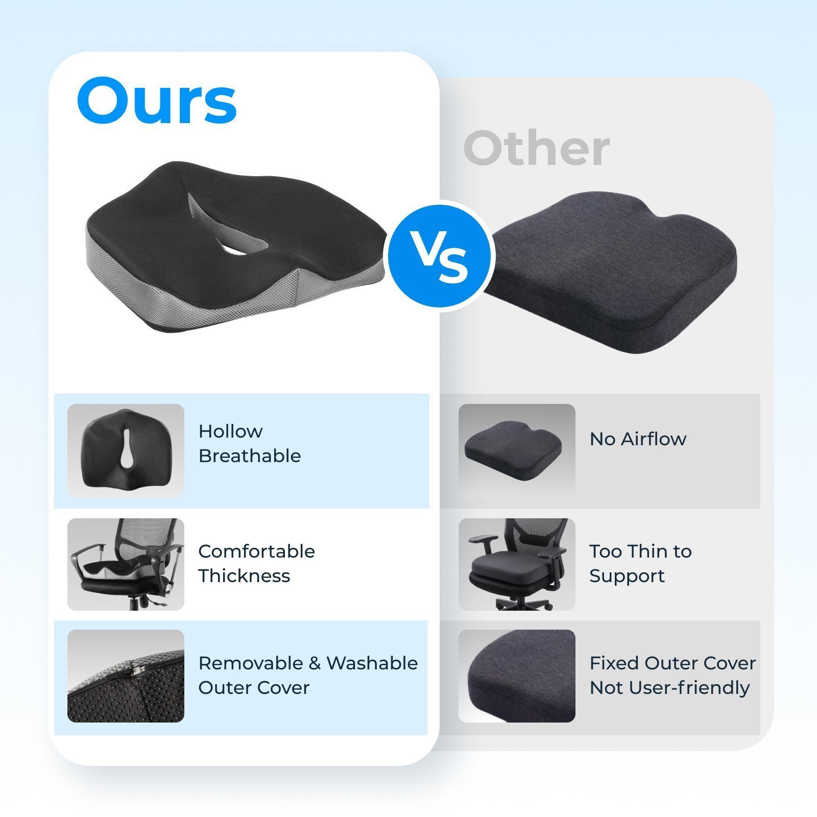 Sitting for hours on end is sometimes unavoidable and can contribute to health problems including back pain, sciatic nerve irritation, spinal compression, chronic muscle fatigue and more. NOW you can start saying goodbye to these discomforts with the Memory Foam Cushion. The cushion alleviates lower back pain and pelvic area aches and soreness and provides pain relief by taking pressure off your back, hip, legs, tailbone, sciatica, prostate, perineal, pelvic area, etc. Zippered cover is washable to ensure sanitary and long term enjoyability.