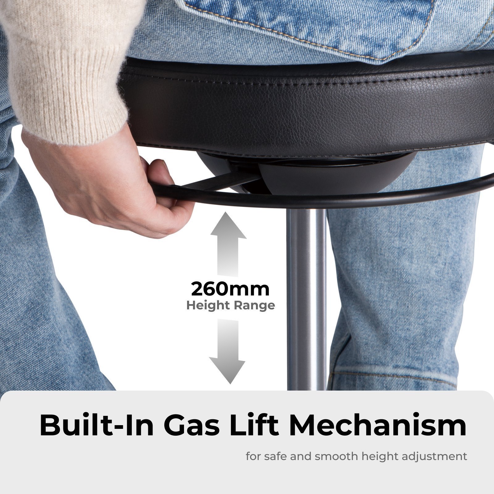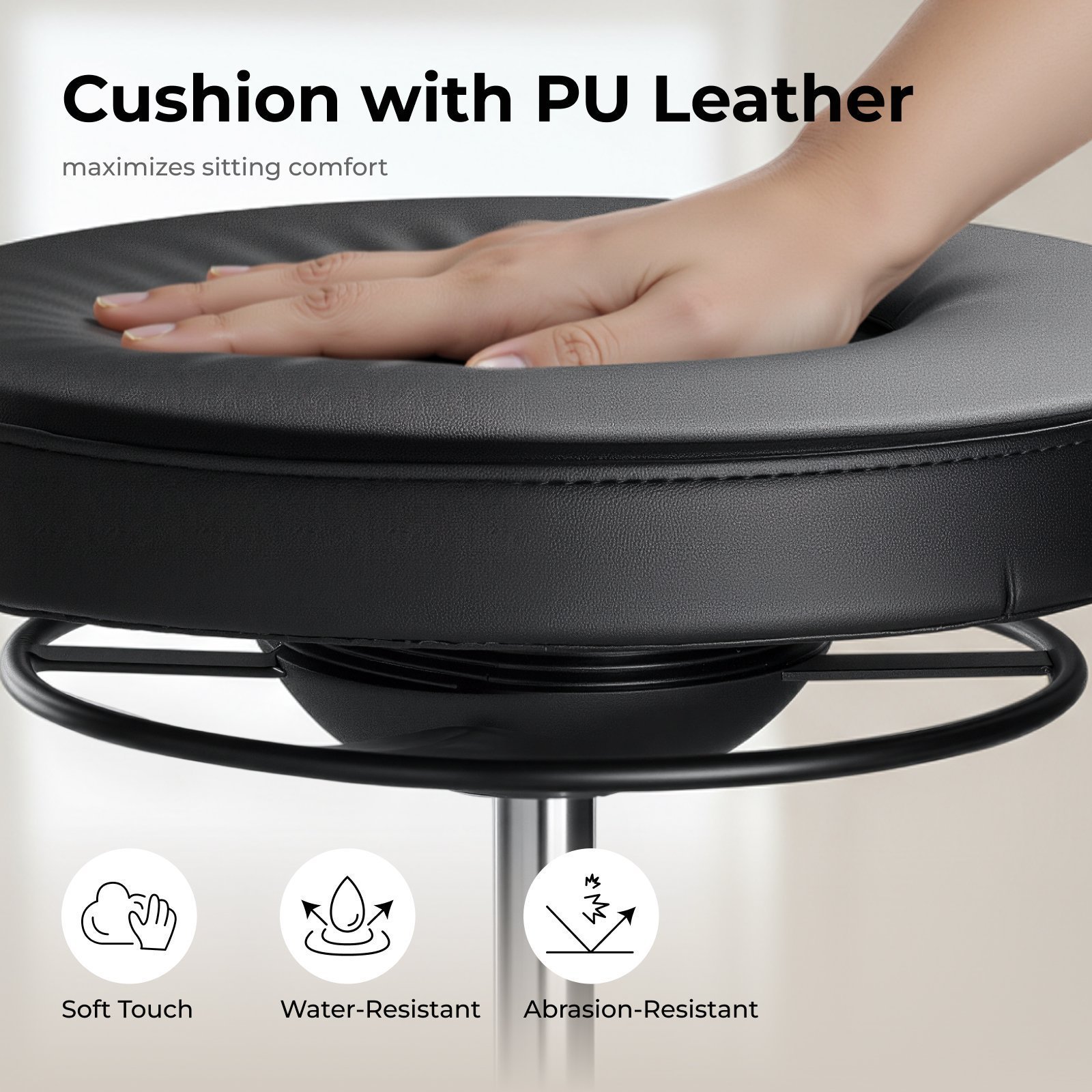 - Faux Leather Upholstered Seat: offers durability and waterproofness (easy cleaning with damp cloth)