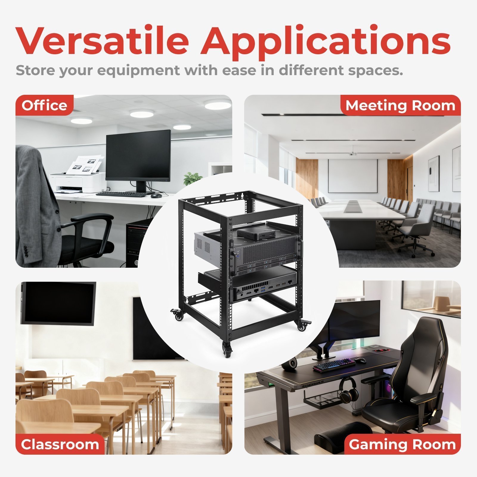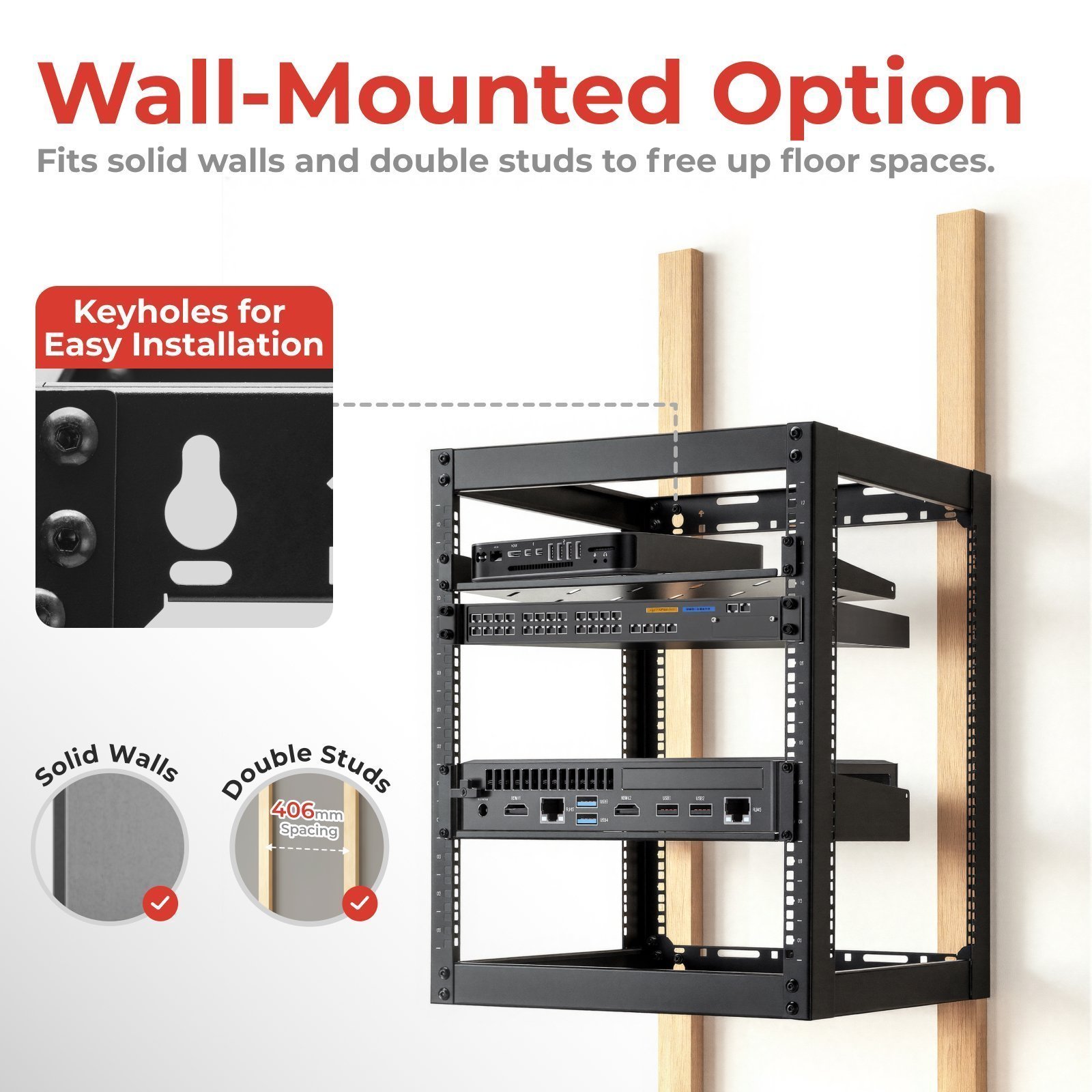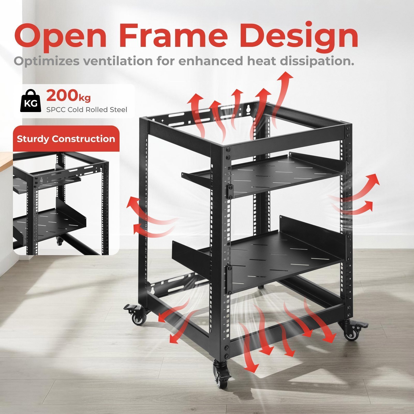 Constructed from SPCC cold rolled steel, the CAB-017 Open Frame Server Rack Series is robust and can hold up to 200kg, which is great for servers, AV gear, networking hardware, and other equipment. It is essential for small server rooms that allow efficient use of space.
