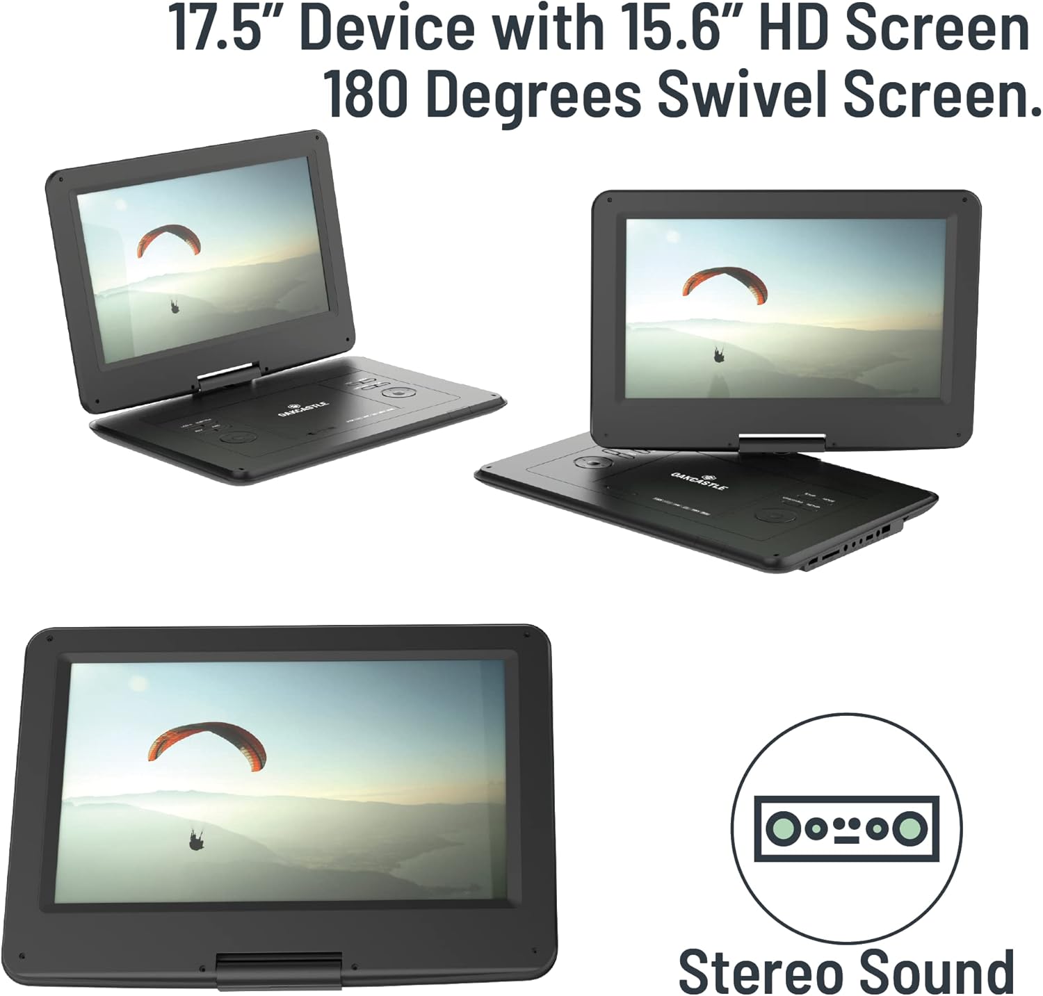 - 2.0 STEREO, MULTI-SCREEN SETUP: Connect multiple DVD players for multi-user viewing or use with a TV or projector. for a shared experience. Additionally, enjoy crystal-clear audio through 2.0 stereo speakers or immersive headphones via the 3.5mm jack.