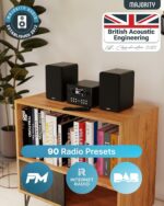 𝗣𝗢𝗪𝗘𝗥𝗙𝗨𝗟 𝗦𝗧𝗘𝗥𝗘𝗢 𝗦𝗢𝗨𝗡𝗗: Includes the Homerton HiFi main unit with two matching speakers, delivering rich stereo audio. Choose from EQ presets or customise bass and treble with My EQ settings.