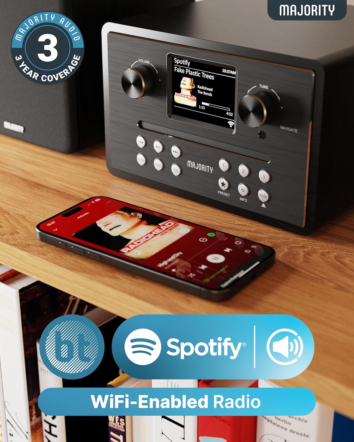𝗔𝗟𝗟 𝗜𝗡 𝗢𝗡𝗘 𝗛𝗜𝗙𝗜 𝗦𝗬𝗦𝗧𝗘𝗠: Enjoy versatile playback with CD player, DAB/DAB+ digital radio, FM radio, Bluetooth 5.3 streaming, USB playback and phone charging, Internet radio, and Spotify Connect. Perfect for home audio with seamless connectivity.