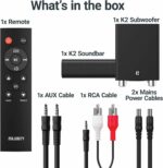 • 𝗪𝗛𝗔𝗧'𝗦 𝗜𝗡 𝗧𝗛𝗘 𝗕𝗢𝗫: This package contains 1x K2, 1x Remote, 1x RCA cable, 2x Power cables, 1x AUX cable and a easy to use user manual. Product Dimensions: 30 x 2.09 x 2.72 inches Product Weight: 7.42 pounds.