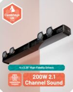 • 𝗣𝗢𝗪𝗘𝗥𝗙𝗨𝗟 𝟮𝟬𝟬𝗪 𝟮.𝟭 𝗦𝗢𝗨𝗡𝗗𝗕𝗔𝗥 – Experience rich audio with 4 built-in woofers and an external subwoofer for deep, cinematic bass.