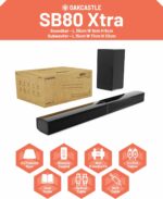 • 𝗪𝗛𝗔𝗧'𝗦 𝗜𝗡 𝗧𝗛𝗘 𝗕𝗢𝗫? Oakcastle SB80 Xtra soundbar, external subwoofer, remote, RCA/optical/AUX cables, wall mount kit, AAA batteries & manual. Dimensions: Soundbar (assembled) 78 × 9 × 6 cm, Subwoofer 17 × 15 × 33 cm, Total weight 5.1kg