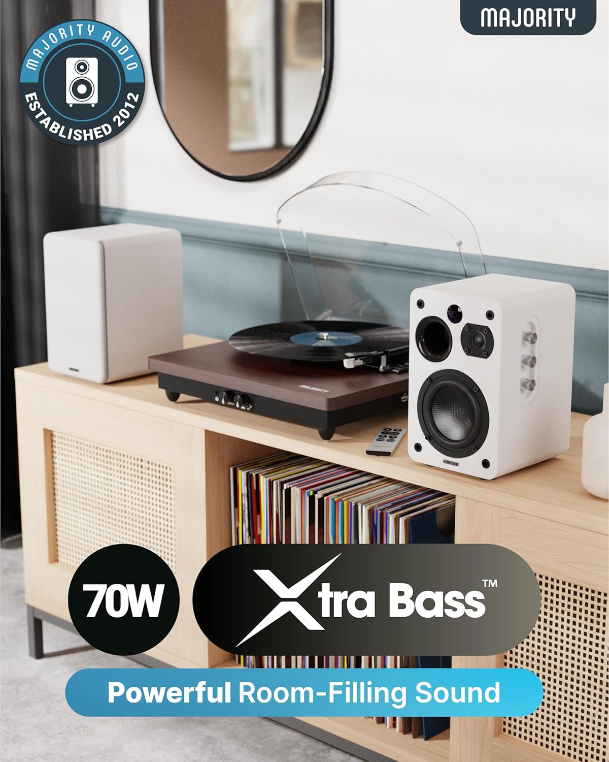 Home General Majority Speakers Active D70X 70W 2.0 BT/USB/Phono/HDMI ARC White (pair)