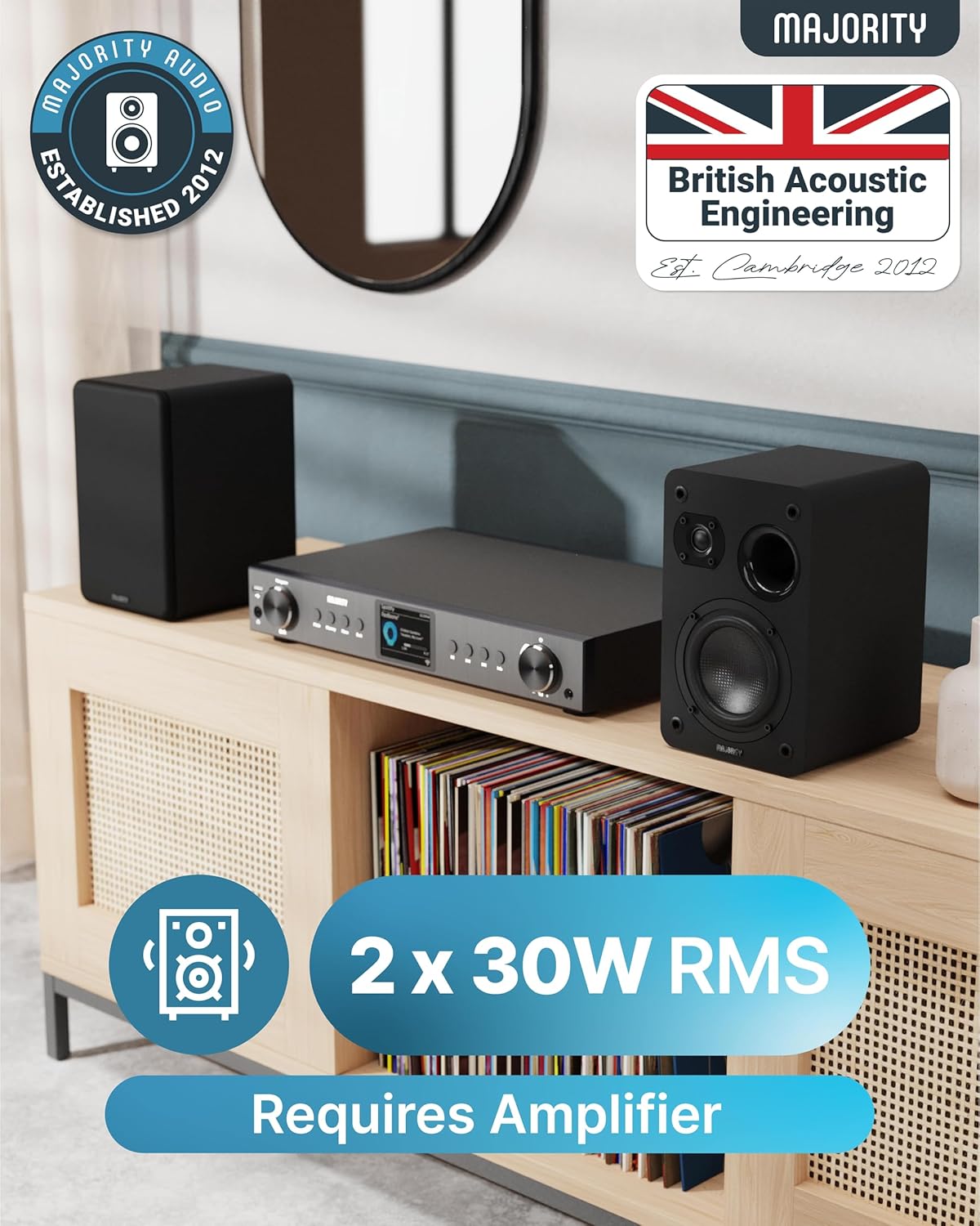 𝗛𝗜𝗚𝗛-𝗙𝗜𝗗𝗘𝗟𝗜𝗧𝗬 𝗔𝗨𝗗𝗜𝗢: Experience rich, immersive sound with stereo speakers precision, designed for use with amplifiers up to 30W per channel (60W RMS total). These bookshelf speakers deliver crisp highs and resonant lows—perfect speakers for record player setups, hifi speakers systems, or as turntable speakers for vinyl lovers.