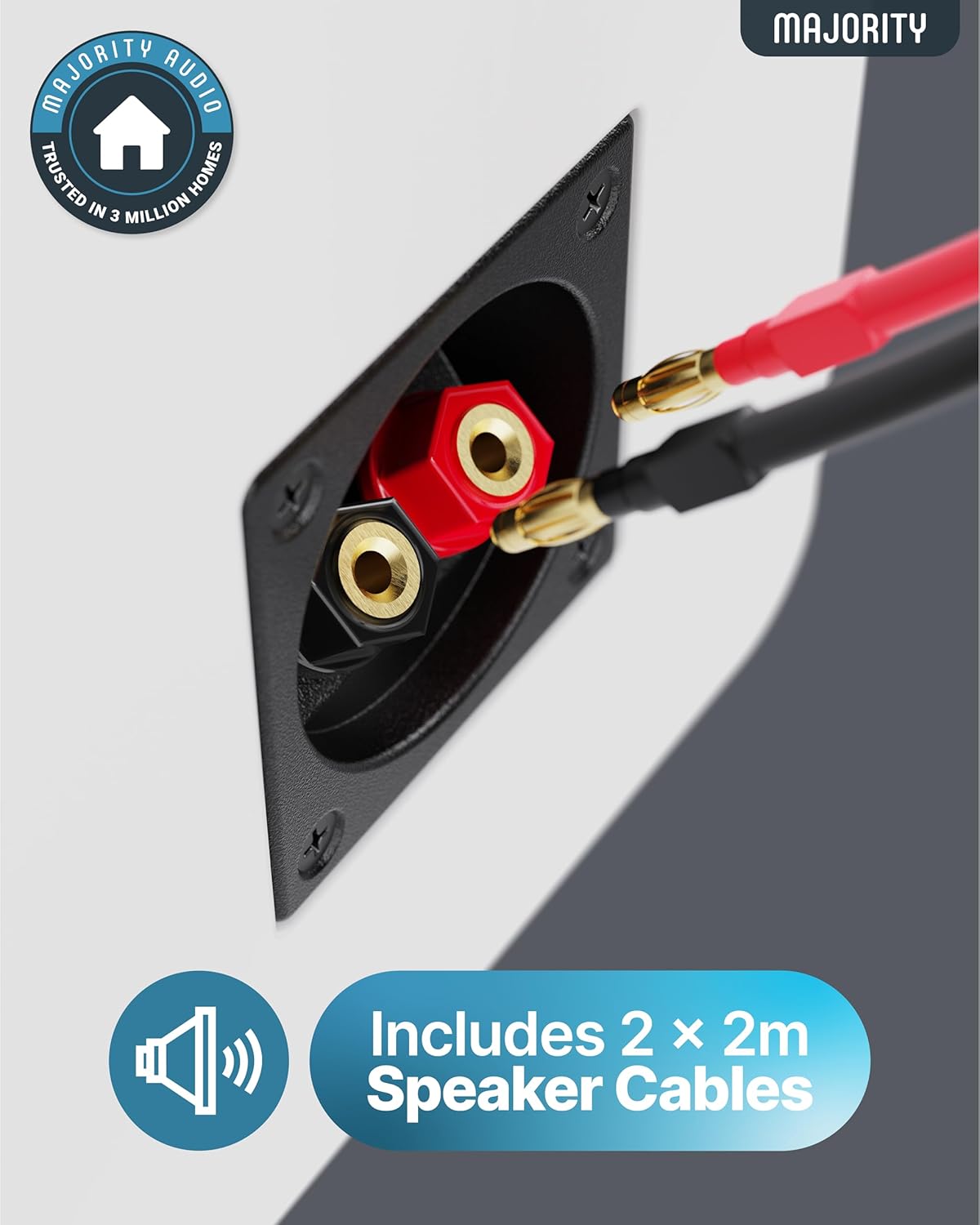 𝗪𝗛𝗔𝗧’𝗦 𝗜𝗡 𝗧𝗛𝗘 𝗕𝗢𝗫: This product includes 2 x Majority D70XPassive Speakers, 2 x 2-metre speaker cables (banana plug to stripped wire), and 1 x User Manual. Each speaker measures 14.5 cm (W) x 17.cm (D) x 23 cm (H) and weighs 3.6 kg.