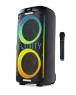 - The Pulse 4 Party Speaker blasts 420W of powerful sound with dual 10 drivers, Bluetooth, smart AI lights, and TWS pairing. Includes a wireless microphone with two extra mic ports, USB/AUX/SD playback, remote control, and 6-hours of rechargeable portability – perfect for any party.