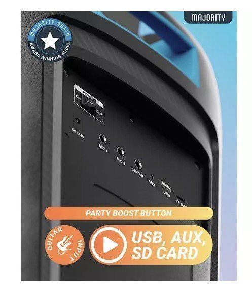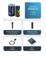 - The mighty Pulse 5 Party Speaker delivers 600W of thunderous sound with dual 12 drivers, Bluetooth, TWS pairing, AI lights, and 8-hour battery life. Includes a wireless microphone with two extra mic ports, a 6.5mm guitar jack, USB/AUX/SD playback, and a remote control – your ultimate portable party machine.