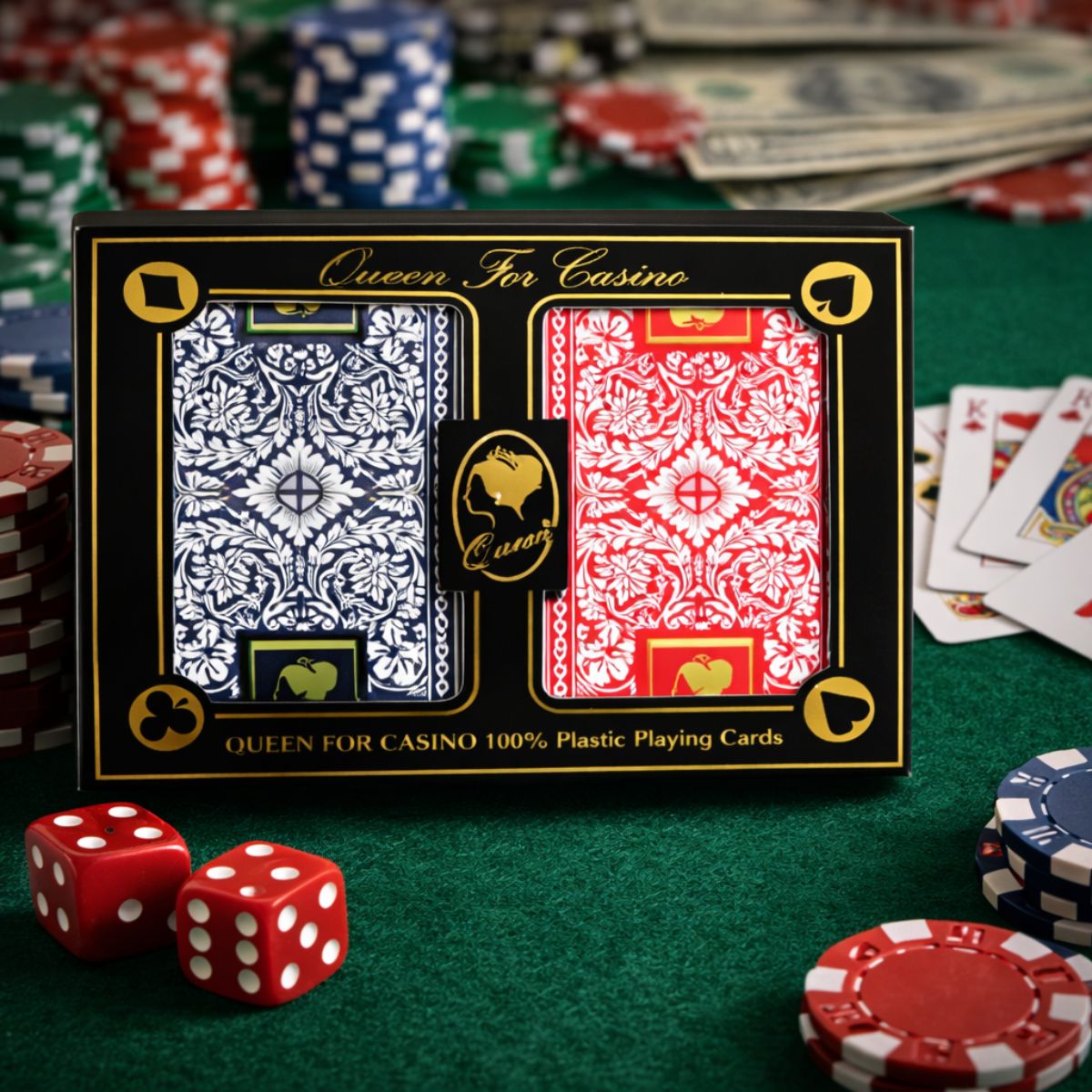 Οι Queen Plastic Casino Playing Cards αποτελούν την ιδανική επιλογή για όσους αναζητούν ποιότητα, αντοχή και άνεση στο παιχνίδι. Κατασκευασμένες από 100% πλαστικό υλικό, προσφέρουν σημαντικά μεγαλύτερη διάρκεια ζωής σε σχέση με τις απλές χάρτινες τράπουλες, διατηρώντας την αίσθηση και την ευχρηστία τους ακόμη και μετά από εκτεταμένη χρήση.