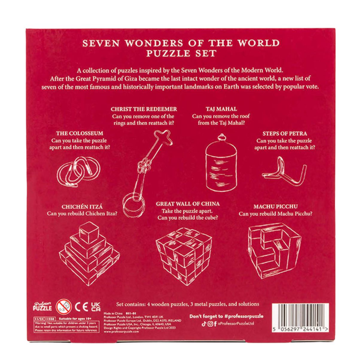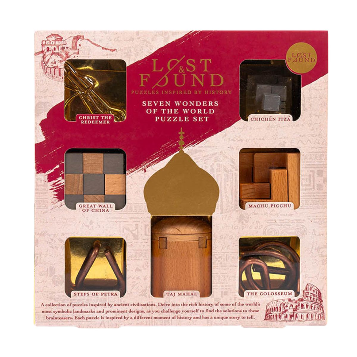 Το Seven Wonders of the World 7-Puzzle Set είναι ένα μοναδικό σετ με 7 γρίφους εμπνευσμένους από τα σύγχρονα θαύματα του κόσμου, ιδανικό για πνευματική πρόκληση όπου κι αν βρίσκεσαι.