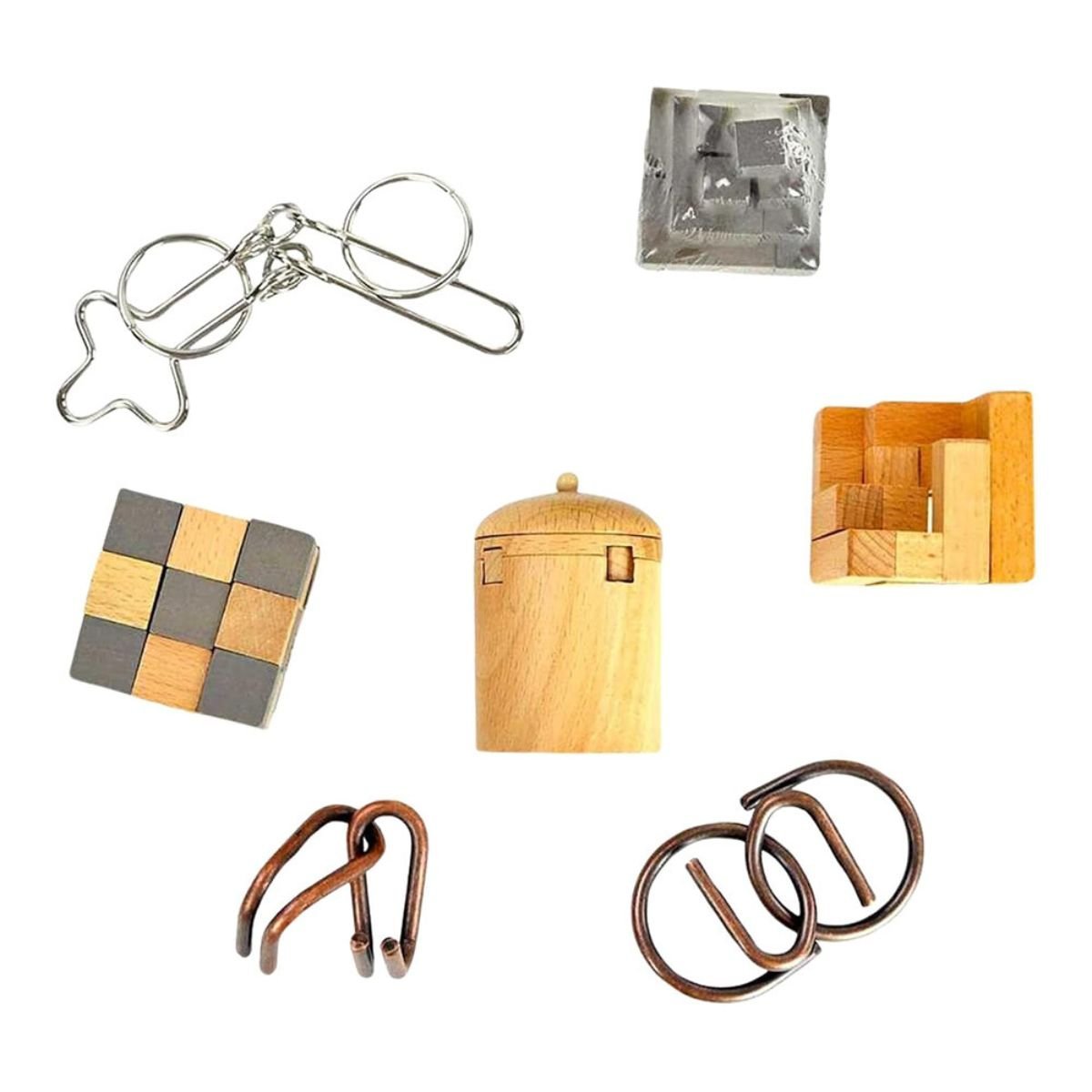 Το σετ περιλαμβάνει 7 διαφορετικές σπαζοκεφαλιές, προσφέροντας ποικιλία και διαρκές ενδιαφέρον. Είναι ιδανικό για χρήση στο σπίτι αλλά και εν κινήσει, είτε βρίσκεσαι σε ταξίδι, κατασκήνωση ή πεζοπορία, δίνοντάς σου την ευκαιρία να αξιοποιήσεις δημιουργικά τον χρόνο σου.