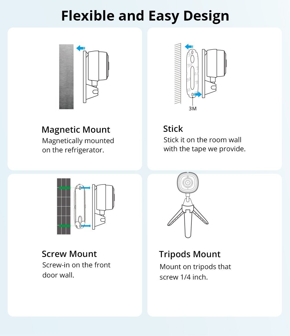 Sonoff Smart WiFi IP Security Camera CAM-Slim (includes 4 ways for mounting magnetic, stick, tripod and screw-in)