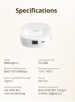 • In addition to Wi-Fi connectivity, Zigbee Bridge Ultra offers the reliability of an Ethernet RJ45 port connection, ensuring a stable and responsive home automation experience.