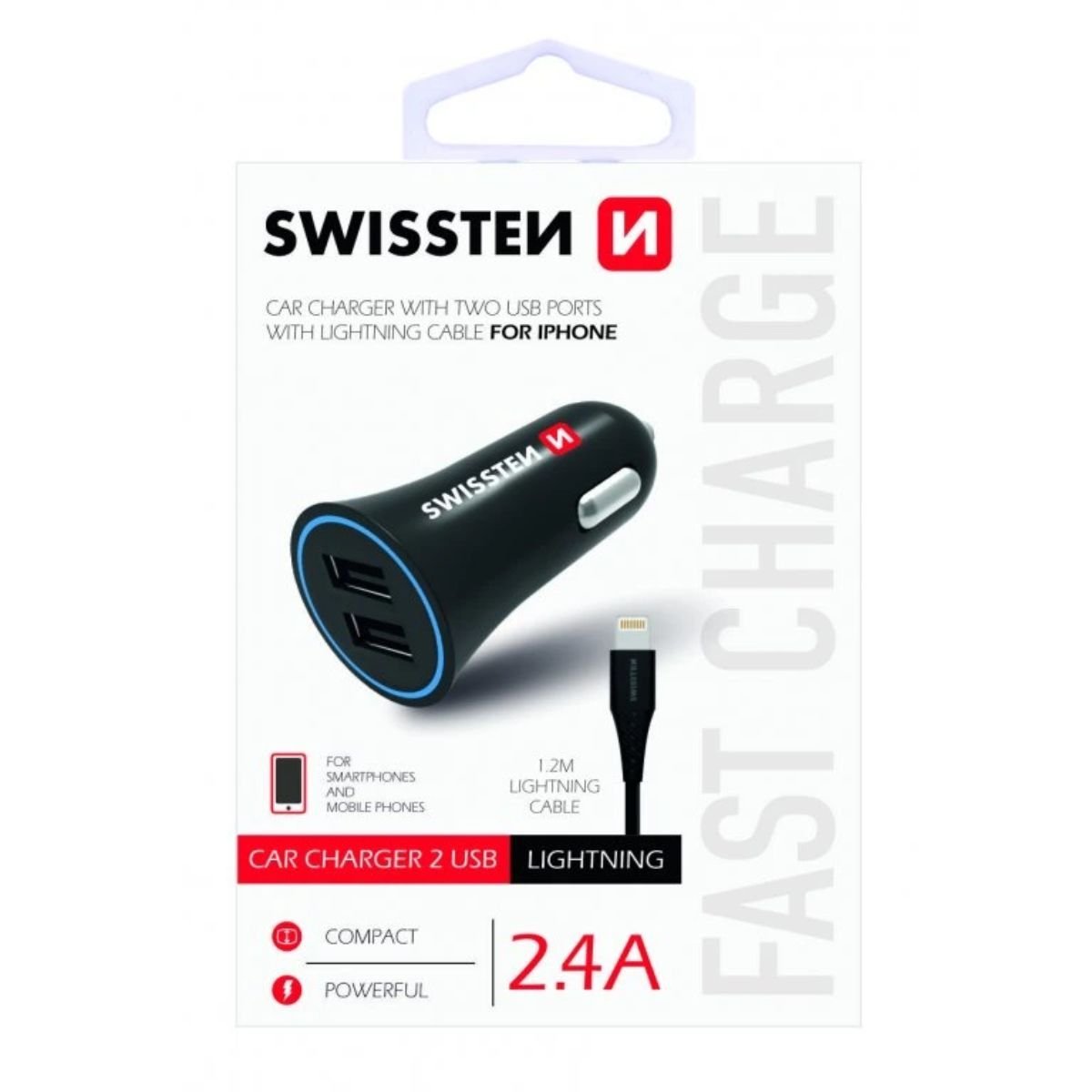 Swissten Φορτιστής Αυτοκινήτου 2x USB 2.4A με Καλώδιο Lightning 1.2m 20110910