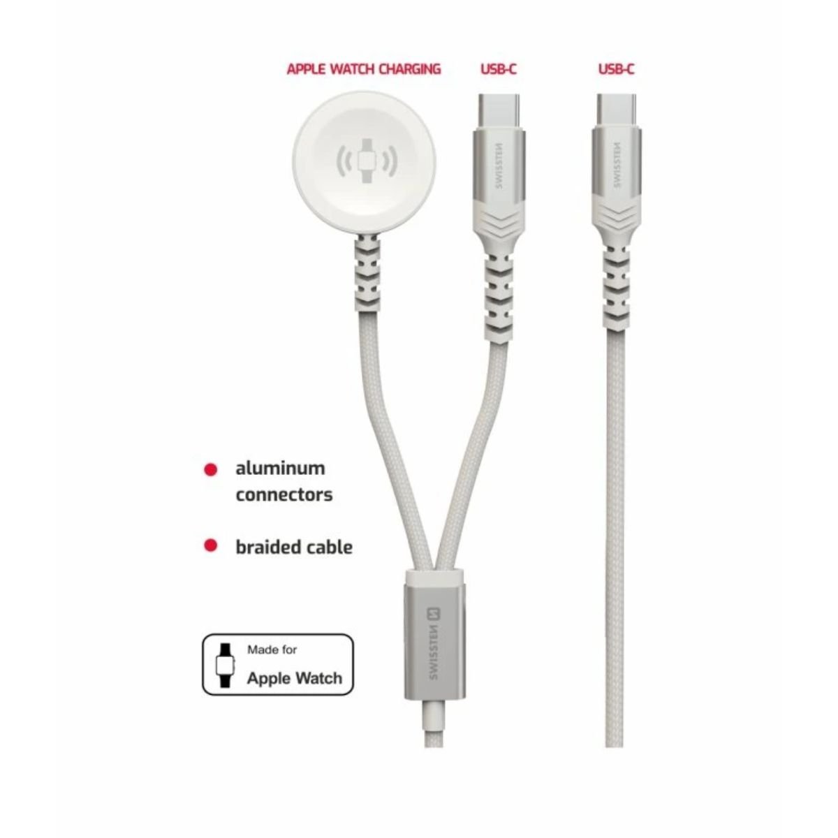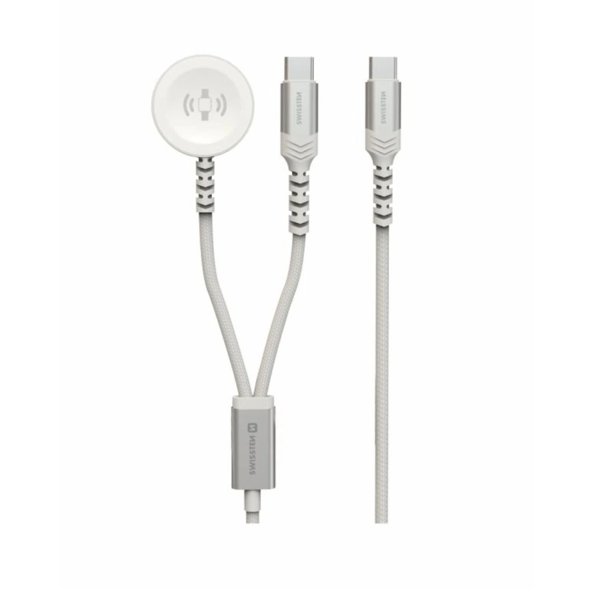 Swissten 2-σε-1 Ασύρματο Καλώδιο Φόρτισης Apple Watch & USB-C 1.2m με Πλεκτή Επένδυση 22065504 Άσπρο