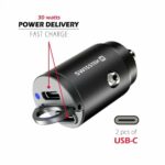 Κομψός nano φορτιστής αυτοκινήτου με 2 θύρες USB-C και υποστήριξη Power Delivery έως 30W.