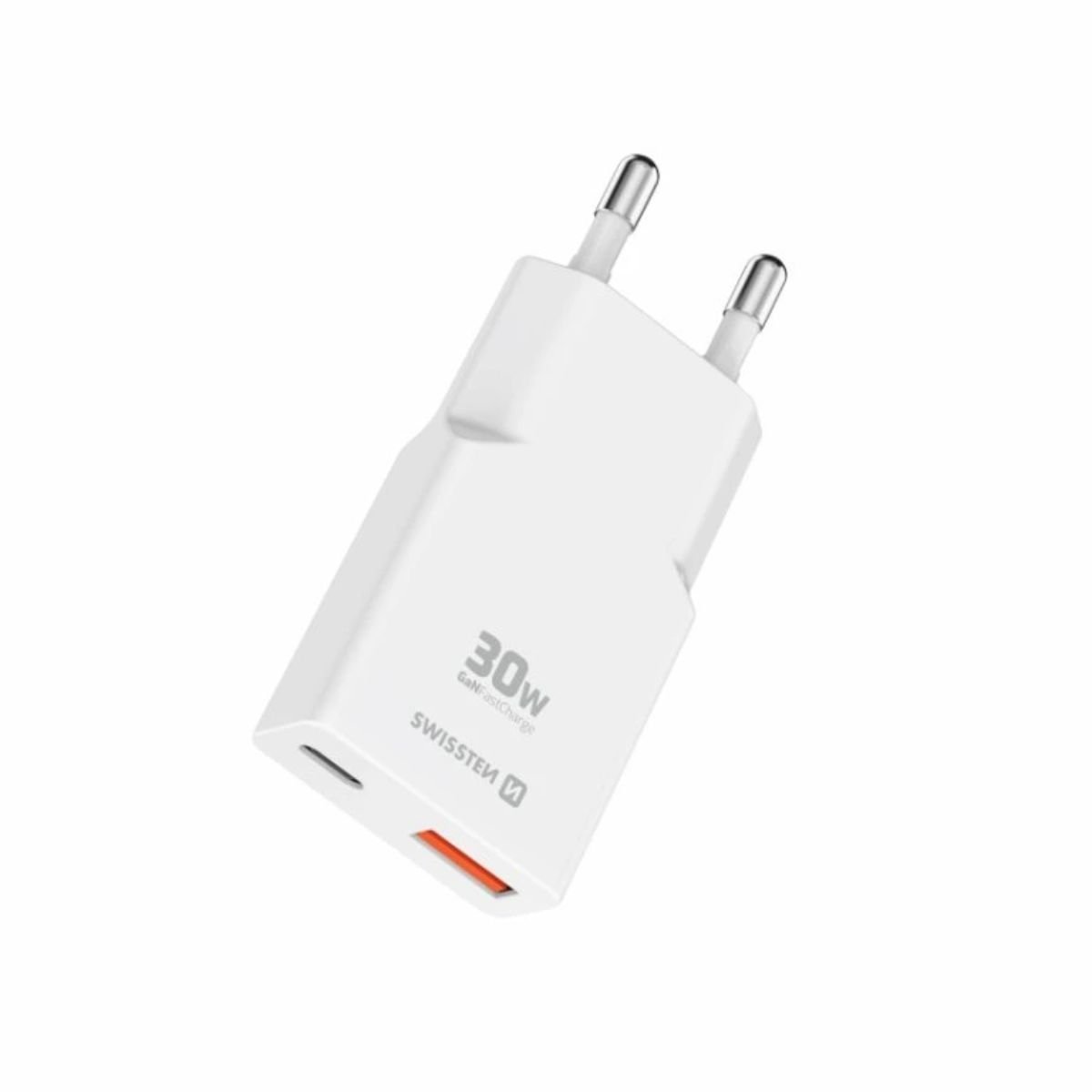 Home General Swissten Slim GaN Ταξιδιωτικός Φορτιστής 30W με USB-C Power Delivery & USB-A Quick Charge 22070201 Άσπρο