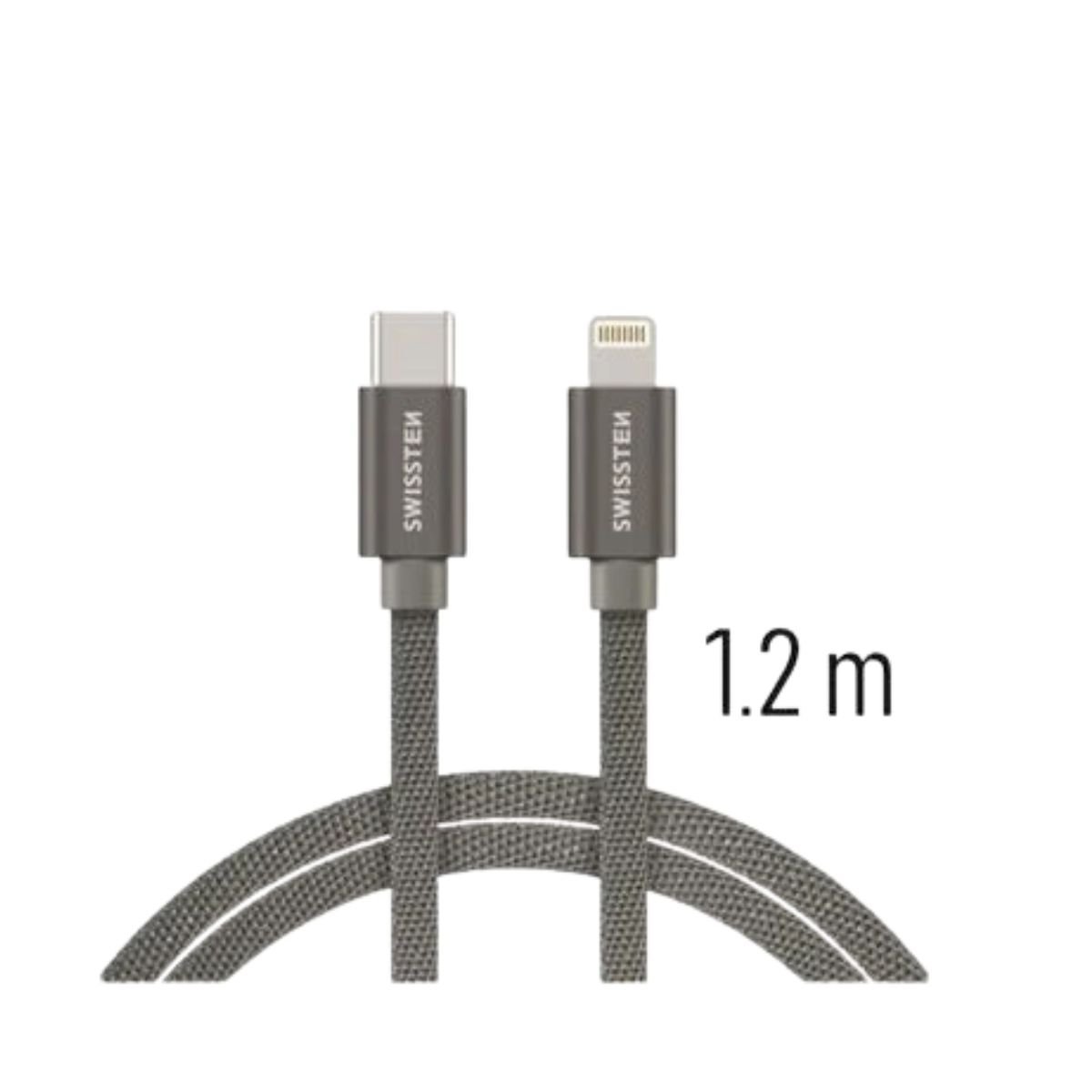 Swissten USB-C σε Lightning Braided Καλώδιο με Power Delivery (PD) 3A 1.2m 71525203 Γκρι