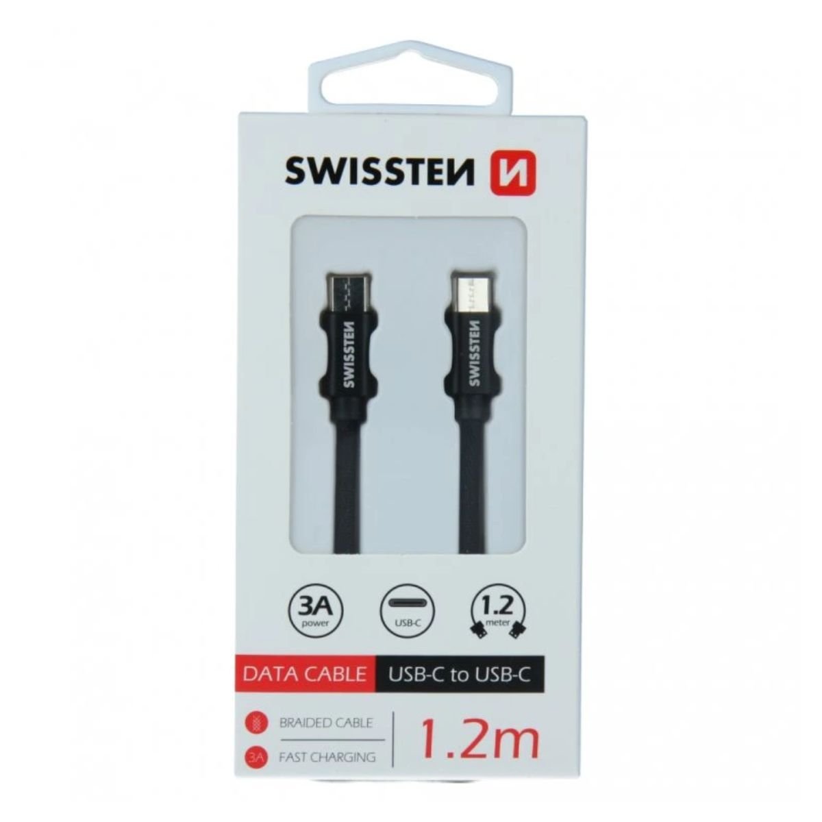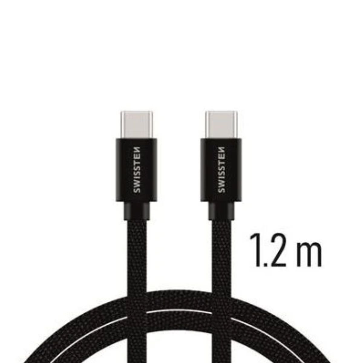 Swissten USB-C σε USB-C Braided Καλώδιο 3A με Ανοδιωμένο Αλουμίνιο 1.2m 71527201 Μαύρο