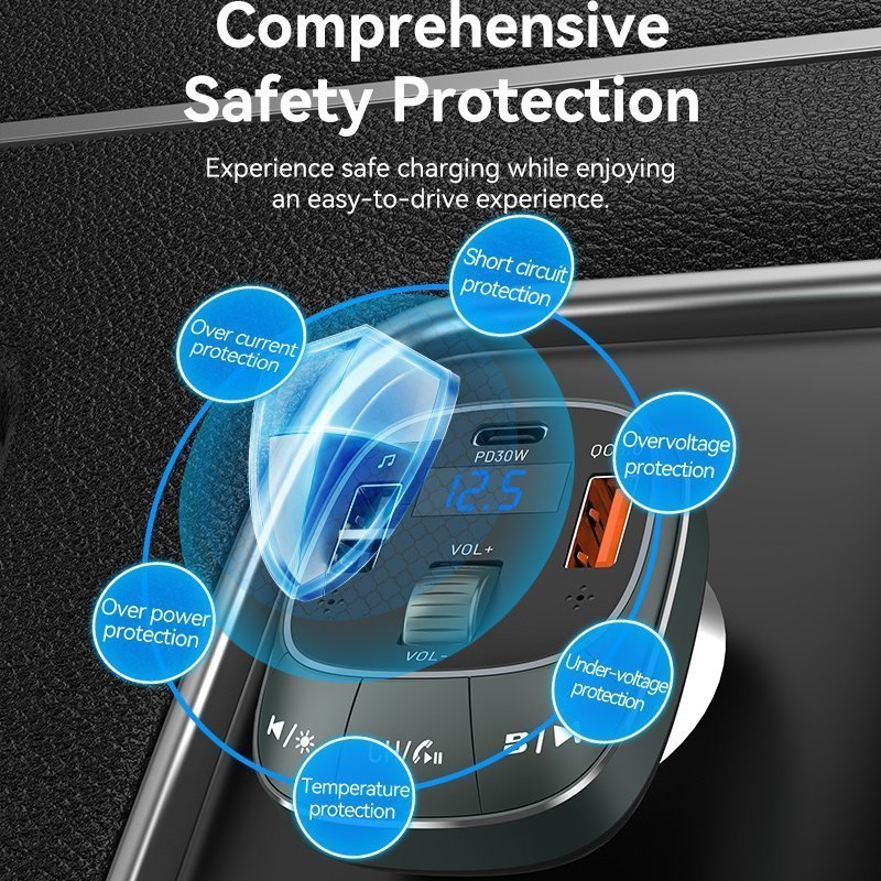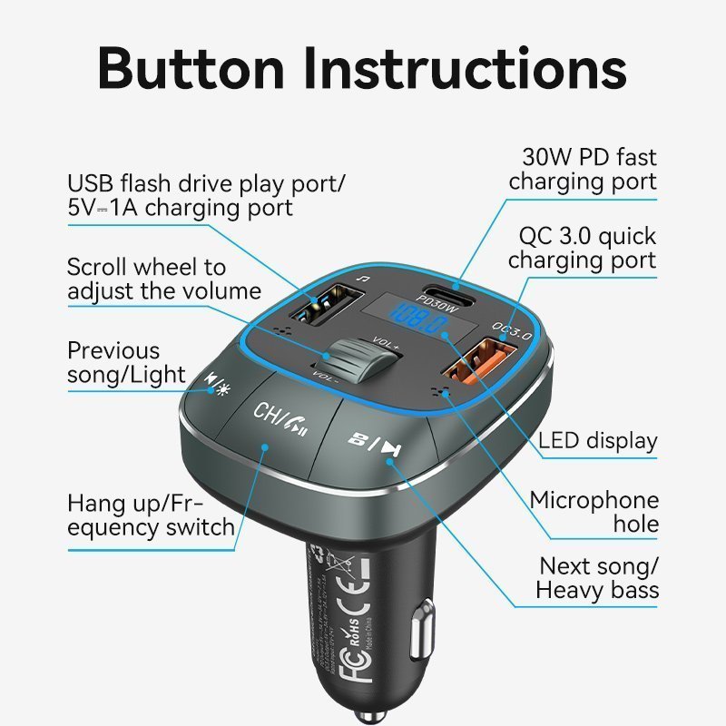 Vention Car FM Transmitter & Charger 3xUSB 30W/18W/5W FFLB0