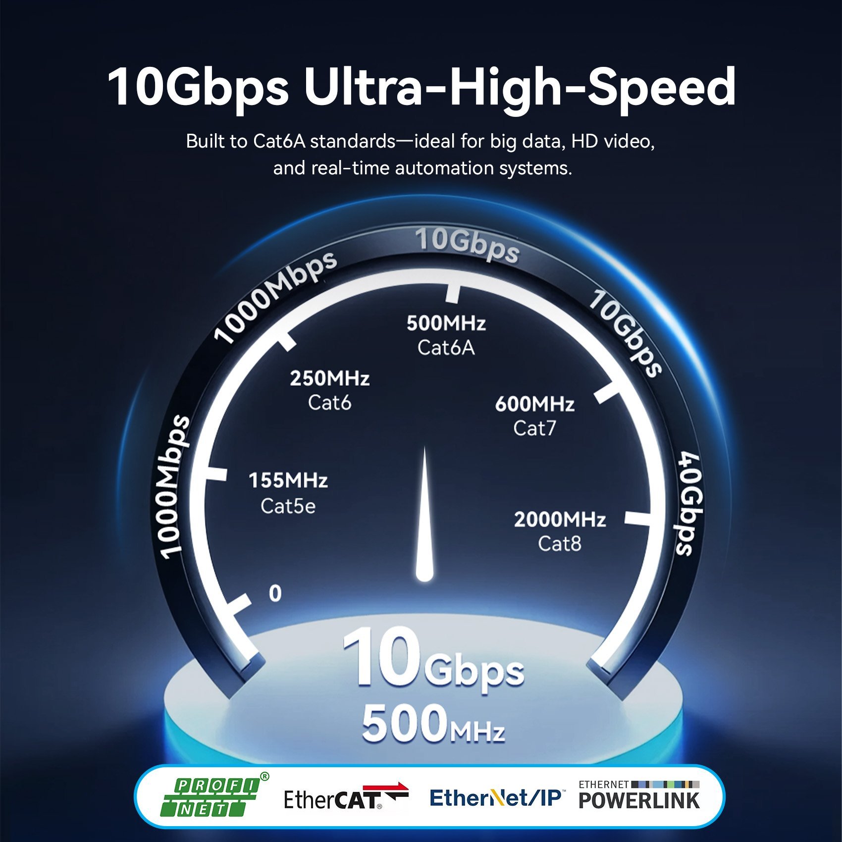 - Category: CAT6A (Supports up to 10Gbps bandwidth)
